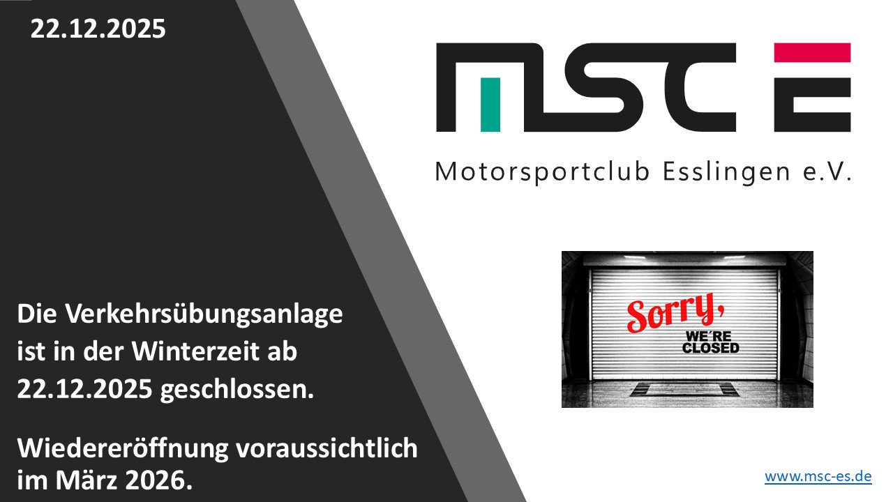 - Haftung des Motorsportclub Esslingen e.V. ist ausgeschlossen, soweit gesetzlich zulässig.